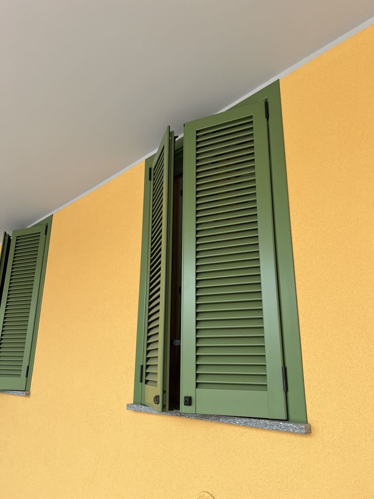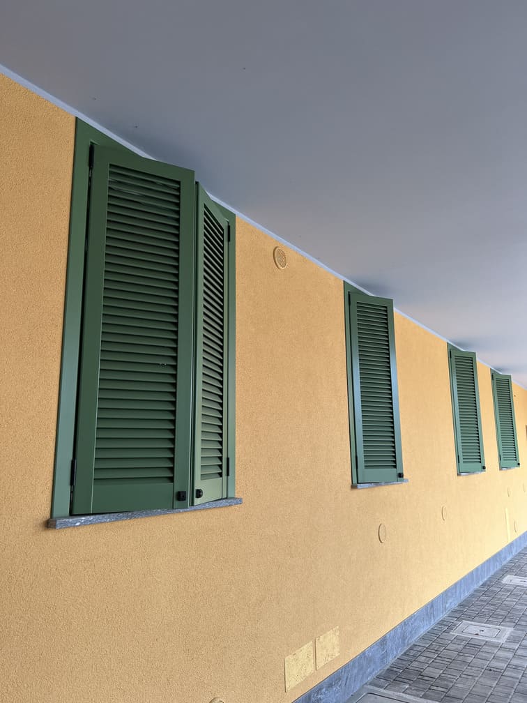 Le persiane in alluminio installate riprendono lo stile tradizionale delle chiusure originali, ma con un vantaggio decisivo: l’utilizzo di materiali moderni che non richiedono manutenzione, resistono agli agenti atmosferici e mantengono inalterata la loro funzionalità nel tempo.